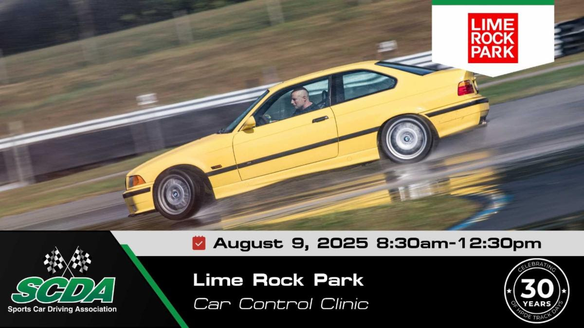October 13th, 2025 | Monday | 9am-1pm Car Control Clinic Open to All Experience Level Drivers Wet Skid Pad & Auto X course Professional Classroom and Coaching Early Registration discount- up to $25