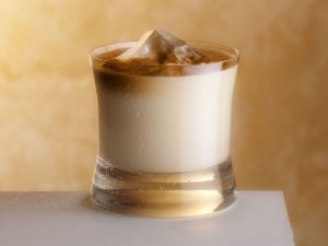 Fill a rocks glass with ice, pour ingredients over the top and stir. Serve with weisswurst mit senf.
