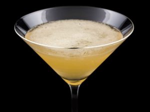 Rinse a chilled coupe (that’s an old-fashioned martini glass, not a two door) with Benedictine. Stir other ingredients with ice and strain into the glass.