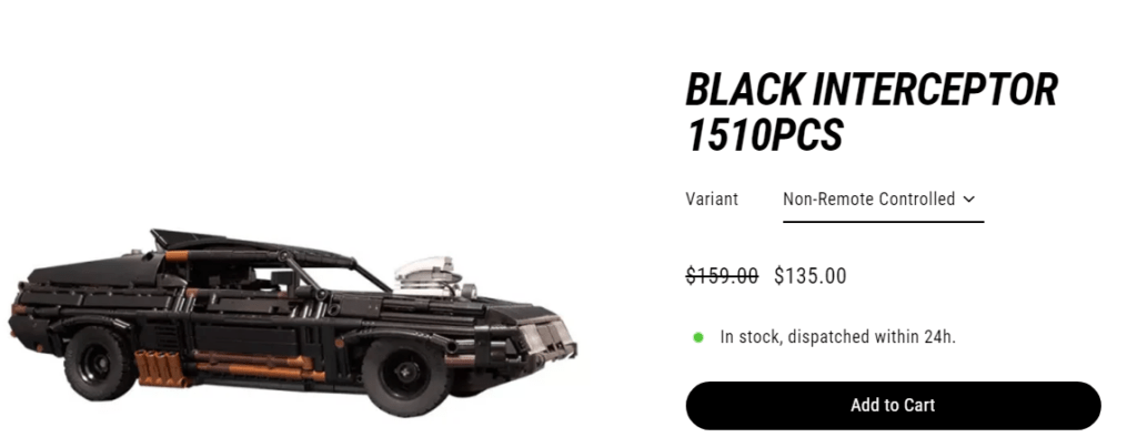 “No ma’am, not just ANY CAR, this is Mad Max’s Ford Falcon XB GT Interceptor! This isn’t just A CAR, this is AN ICON! … in LEGO!”